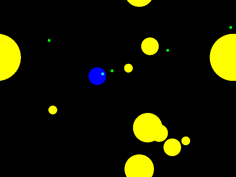 Asteroids have an X and Y position and are drawn as yellow circles.