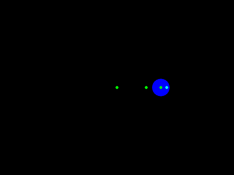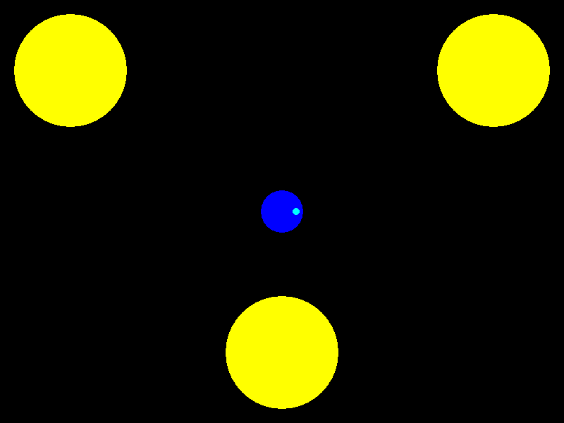 def draw(): screen.fill((0, 0, 0)) screen.draw.filled_circle((800 / 2, 600 / 2), 30, color=(0, 0, 255))