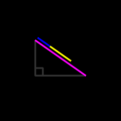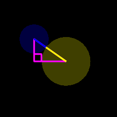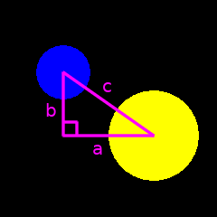 The two other sides in this instance are the differences between the positions of the two circles on the X and Y axes.