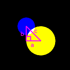 So, if the squared difference between the X axes (a²) plus the squared difference between the Y axes (b²) is equal to the two radiuses added and squared, then the two circles are touching. If a² + b² is less than the two radiuses added and squared, then the two circles are overlapping, or if it's greater, then the two circles are not touching.