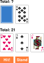 The player can hit (i.e. take another card) or stand (i.e. stop taking cards).