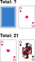 Until the round is over, the dealer's first card is hidden. Instead of drawing a blank card, the face down card image is used.
